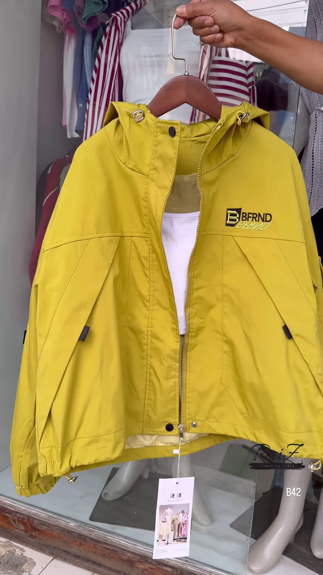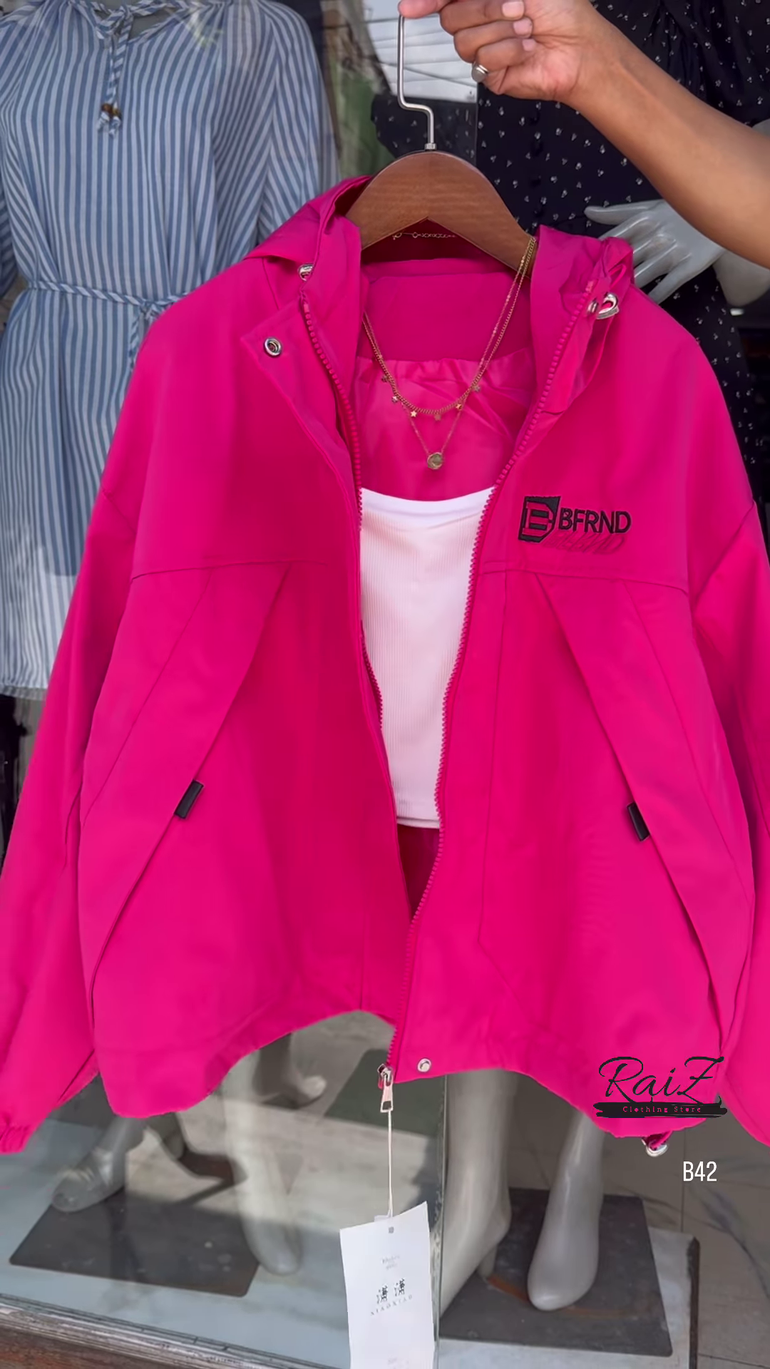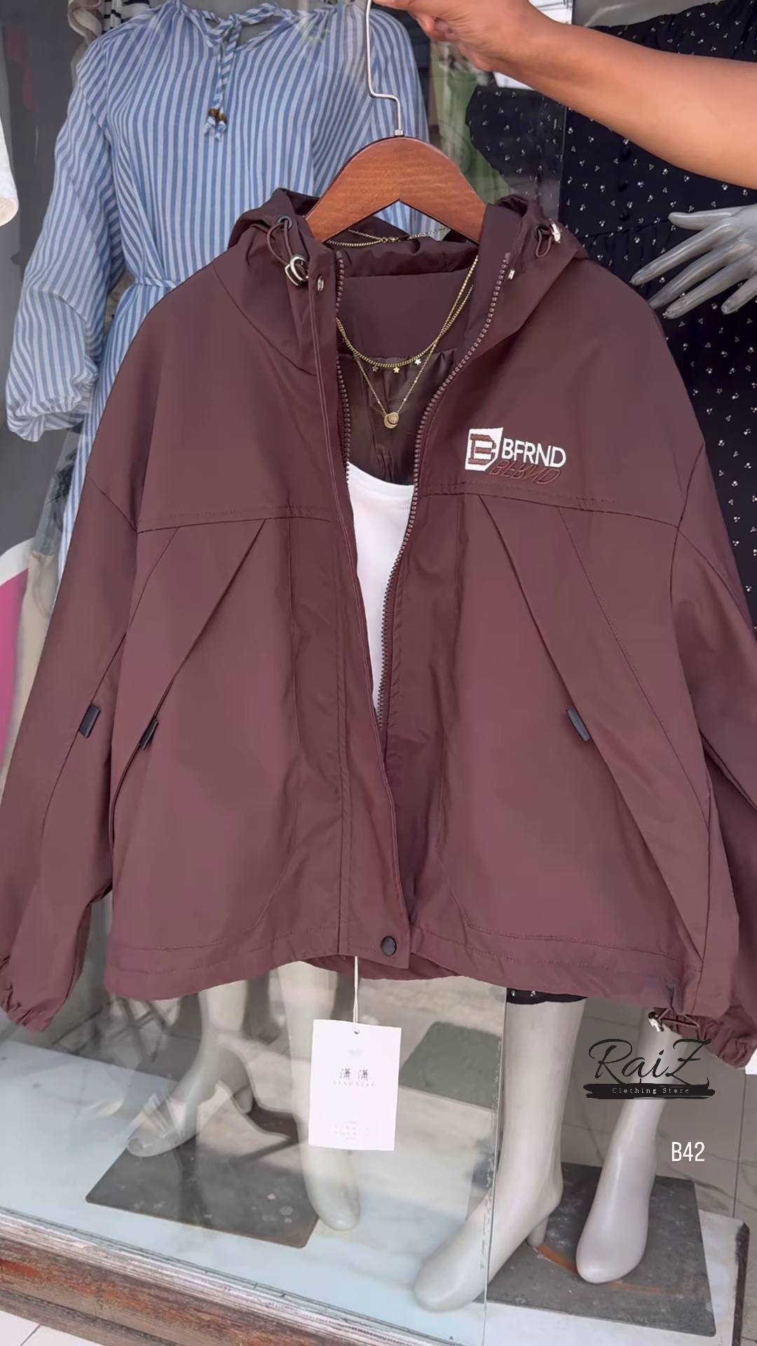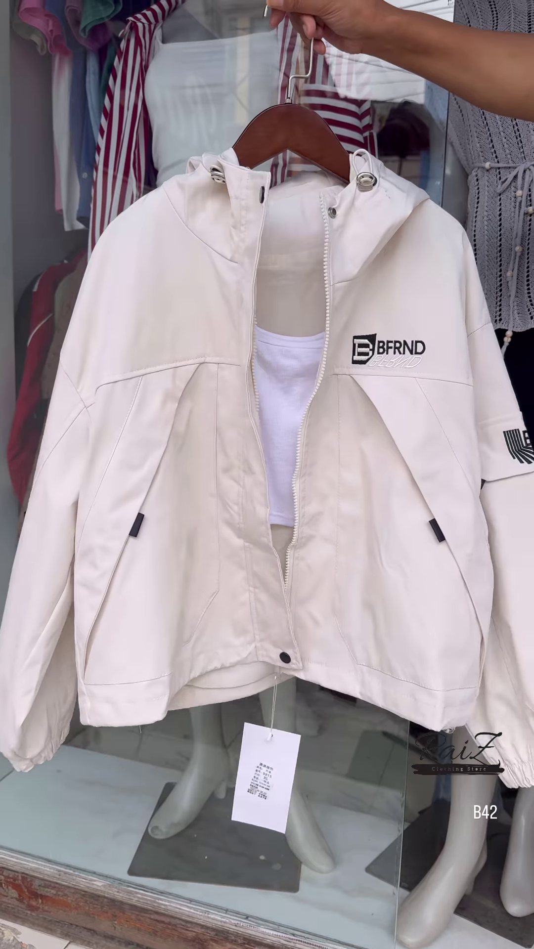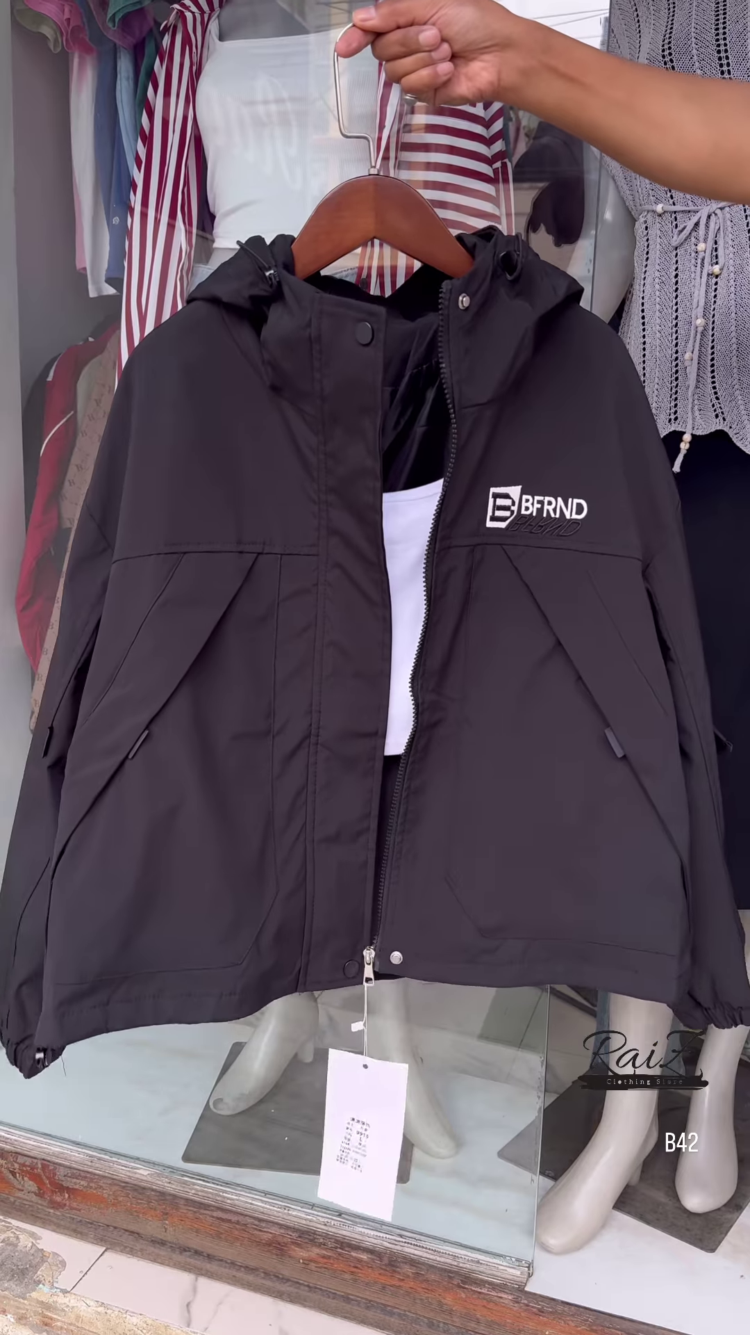 + Free ShippingMake a bold statement with this stylish BFRND hooded windbreaker! Perfect for all seasons, this lightweight jacket adds the perfect touch of sporty chic to your outfit.