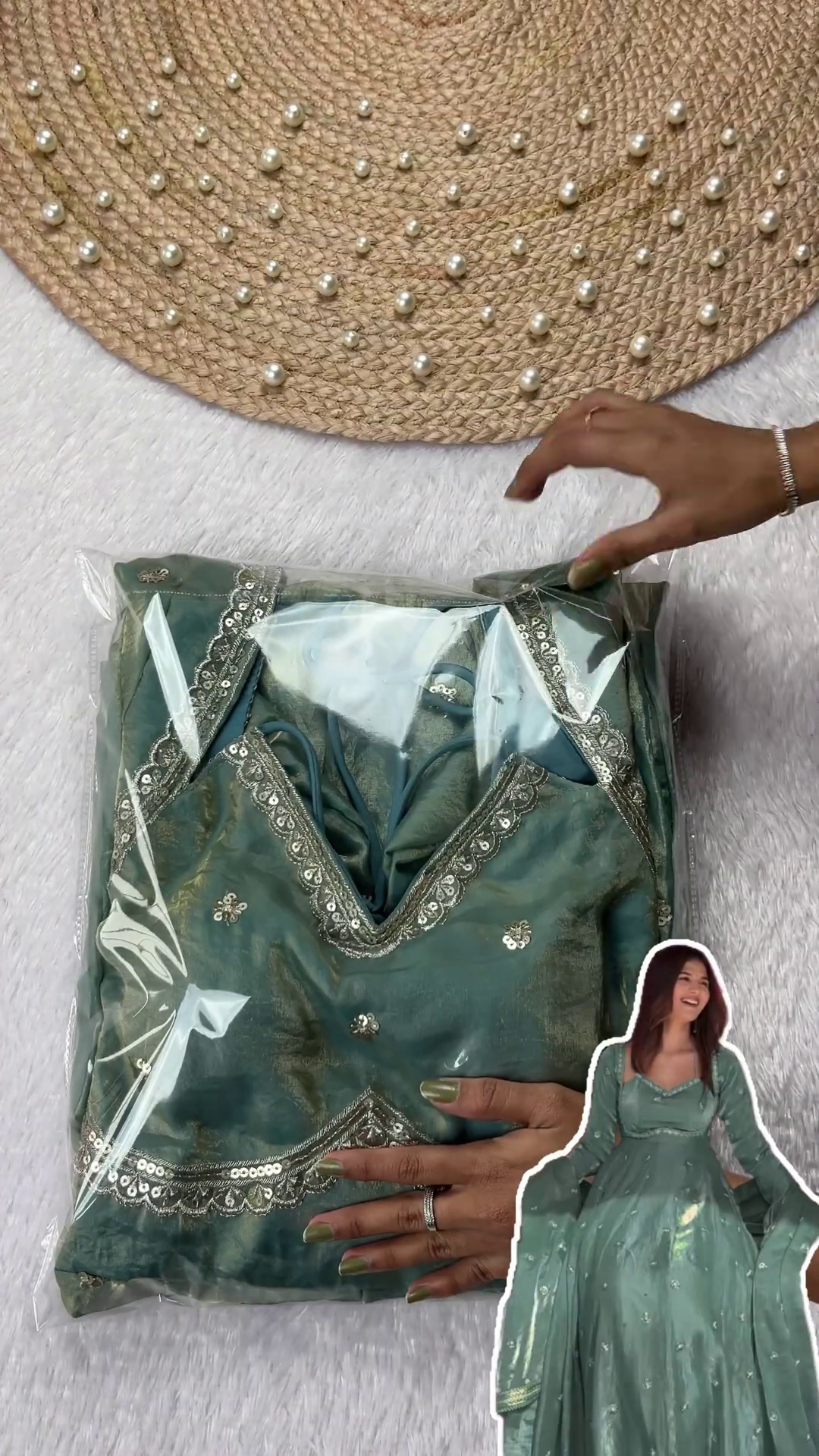 Iridescent Sea-Foam Scalloped Anarkali Gown