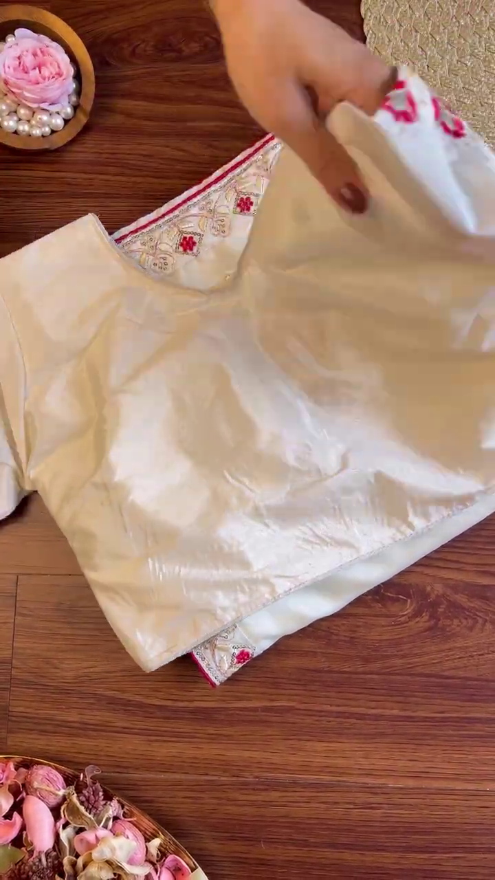 | Sleeves | Mid-Length with Detailed Zari and Sequin Borders |
