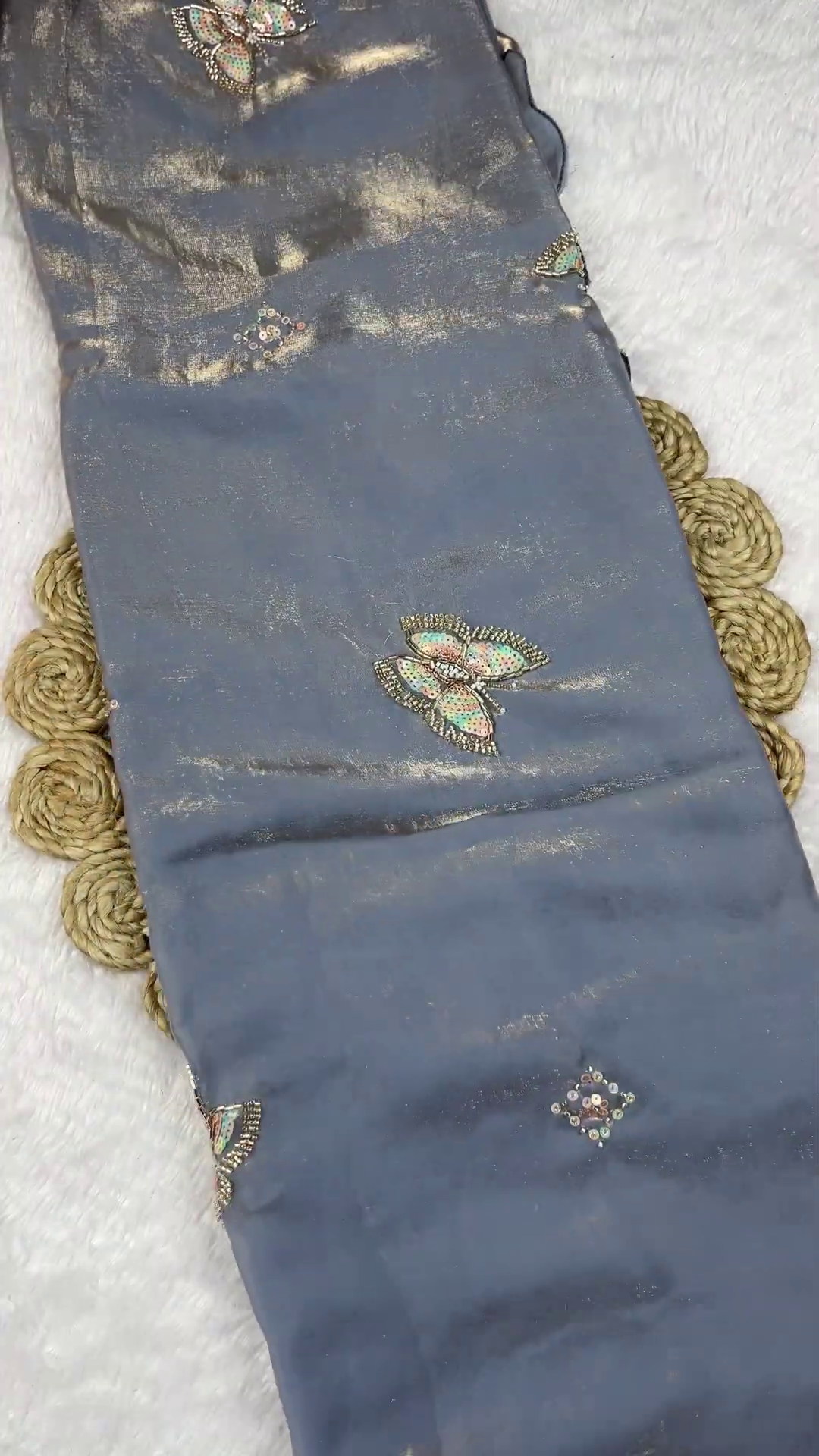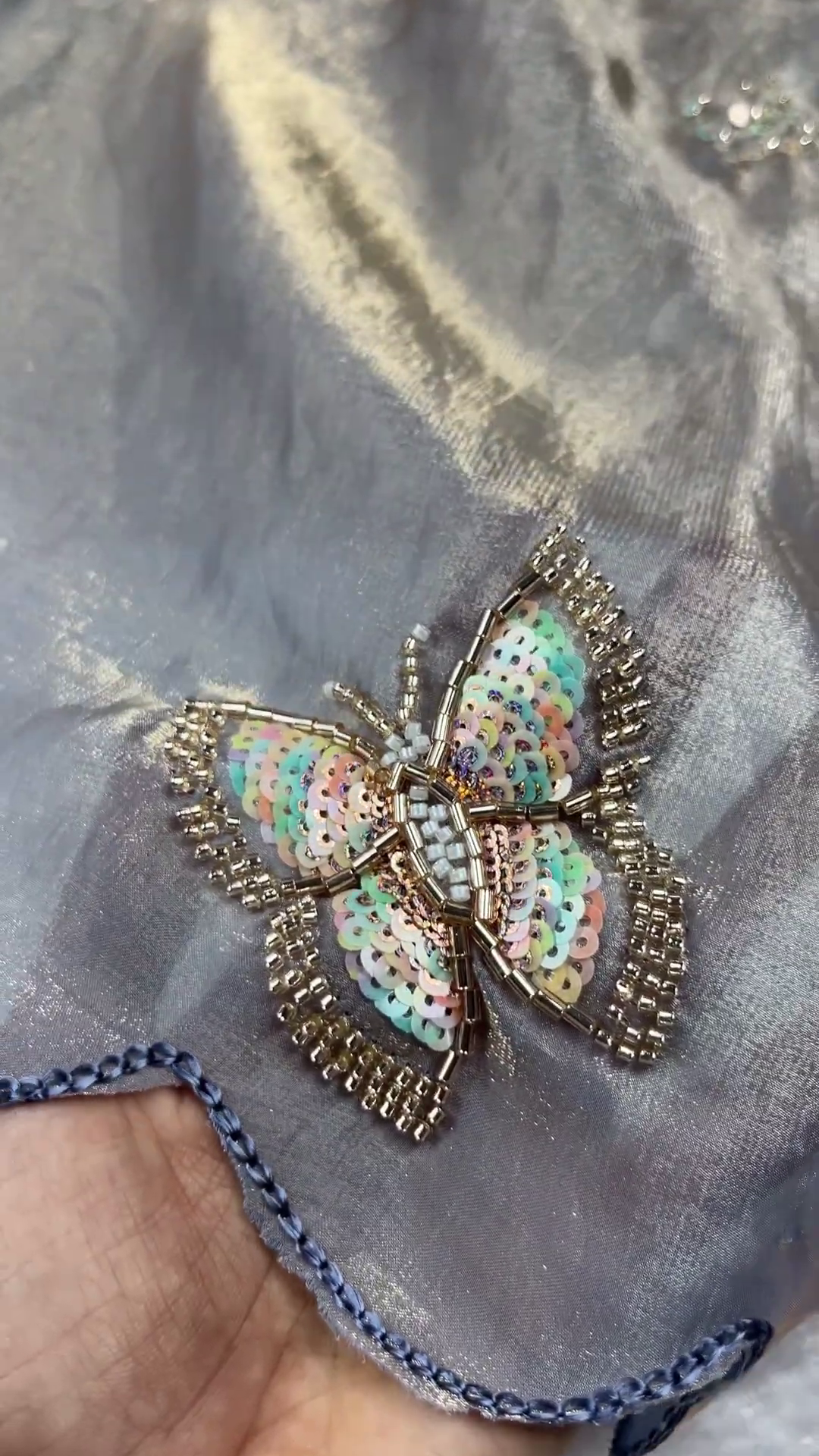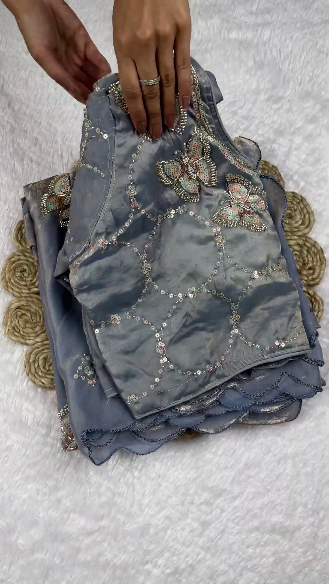 • Intricate Zari & Sequin Work: The artisanal embroidery is highlighted with golden zari thread and shimmering sequins that catch the light beautifully.