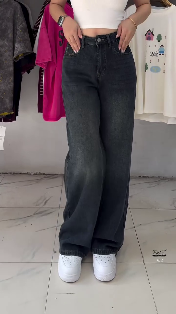 Crafted from premium denim, the fabric strikes the perfect balance between structure and flexibility, allowing for ease of movement while maintaining its shape throughout the day. The vintage-inspired washed black shade adds character and depth, making these jeans easy to style with a variety of tops, shoes, and accessories. The wide-leg cut brings a modern yet retro flair, offering a relaxed, laid-back vibe that is perfect for casual days out, work-from-home looks, or weekend adventures.
