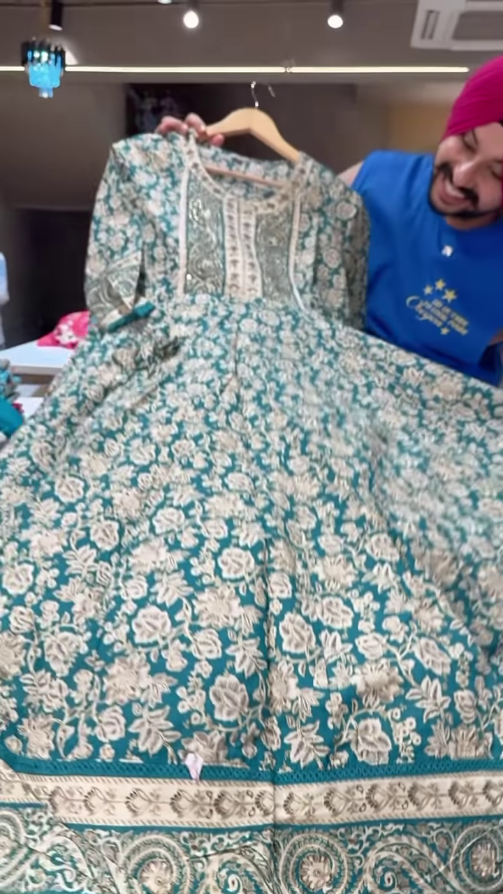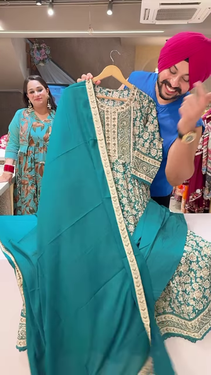 Style this kurti with beige juttis, oxidized jhumkas, or a light woven clutch for casual gatherings, family events, or showroom walk-ins. Add a dupatta with matching beige embroidery or go sans-layer for a clean festive-ready look. The rich teal tone adapts well across summer-to-autumn wardrobe edits.